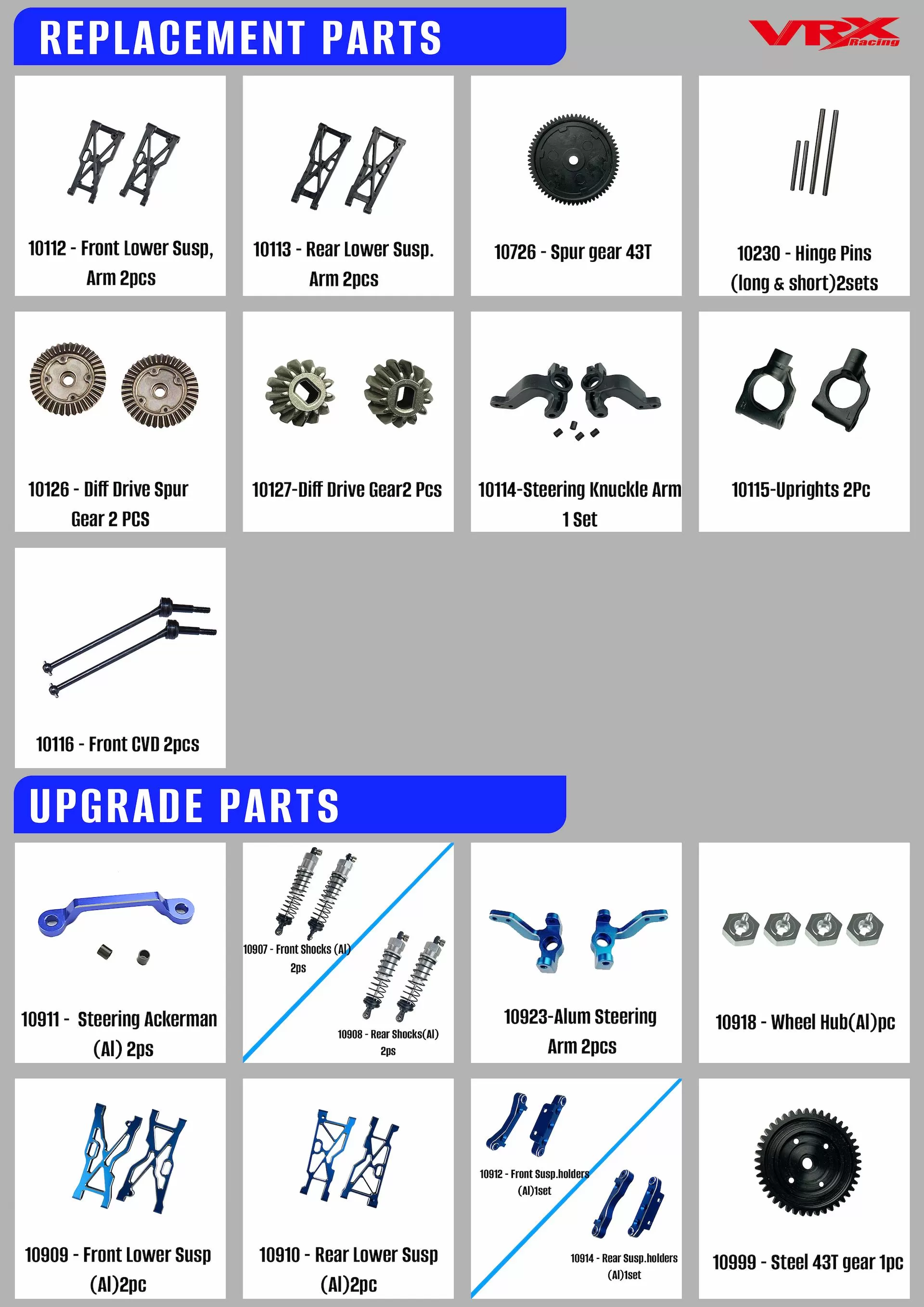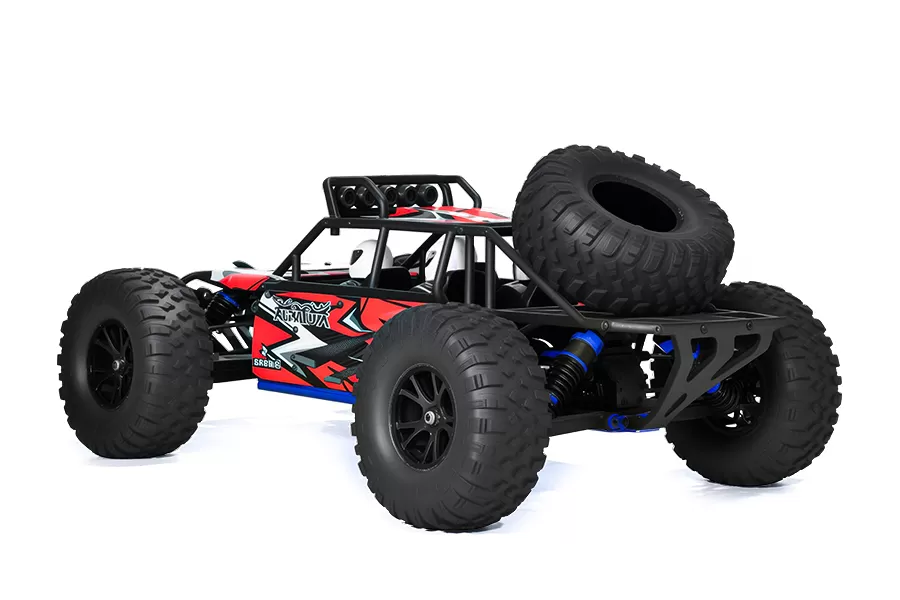 Las partes azules de todo el automóvil están hechas de material de alumbre, lo que proporciona múltiples ventajas. Su alta rigidez mejora la rigidez torsional, mejorando la precisión de manejo y la estabilidad durante maniobras o impactos a alta velocidad. La naturaleza ligera pero duradera del aluminio reduce el peso total mientras mantiene la integridad estructural, aumentando la aceleración y la eficiencia de la batería. Estos componentes absorben eficazmente las vibraciones, protegiendo la electrónica como los ESC y los receptores. La disipación de calor mejorada evita el sobrecalentamiento en los sistemas de energía.