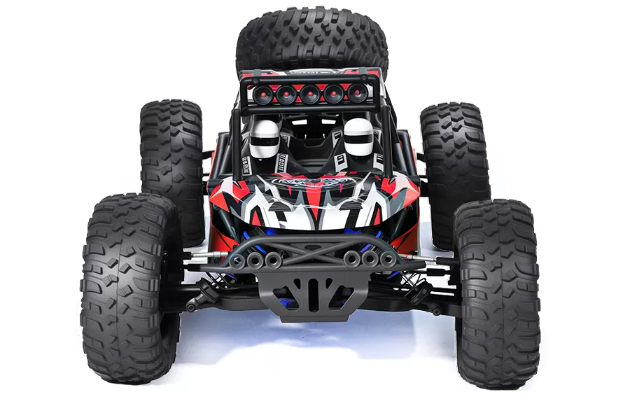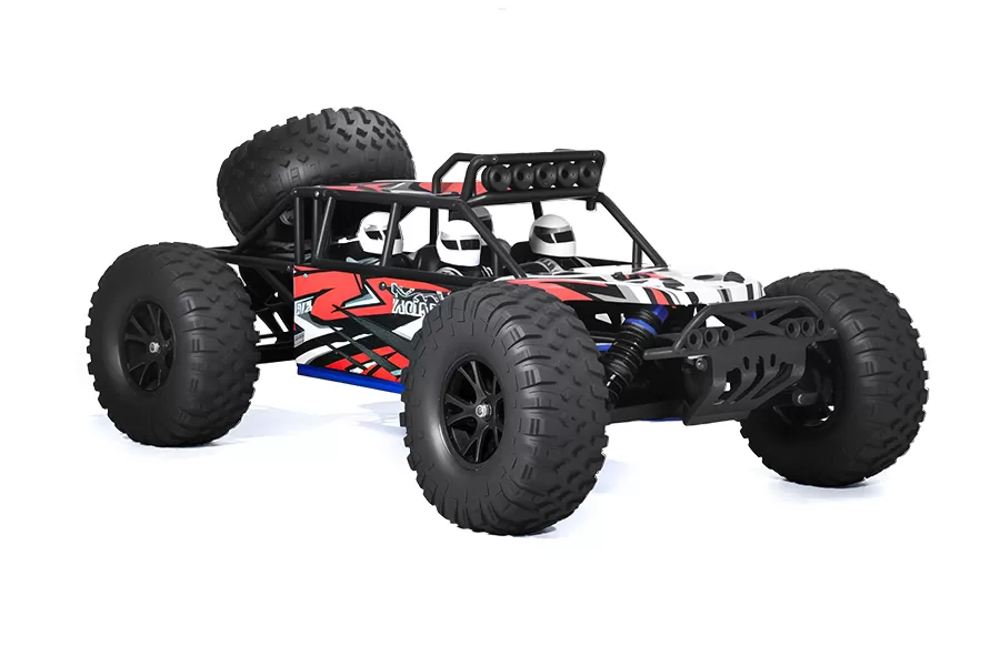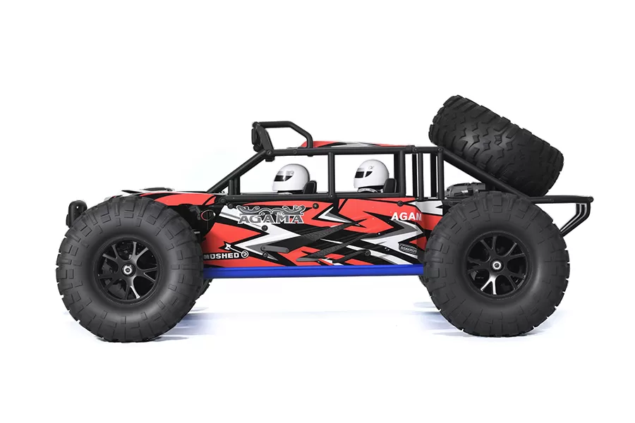 1/10 EP Agama viene Ready-To-Race fuera de la caja con Fly Sky 2,4 sistema de radio GHZ de 4 canales, placas superiores de alumbre y placa de chasis, ya sea que esté dirigiendo sobre arena, grava, O se vuelve rebelde, este Buggy de arena a control remoto impermeable está construido para soportar una superficie rugosa con un agarre experto.