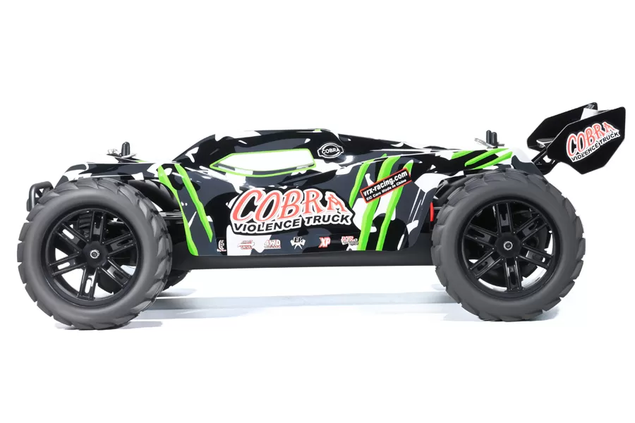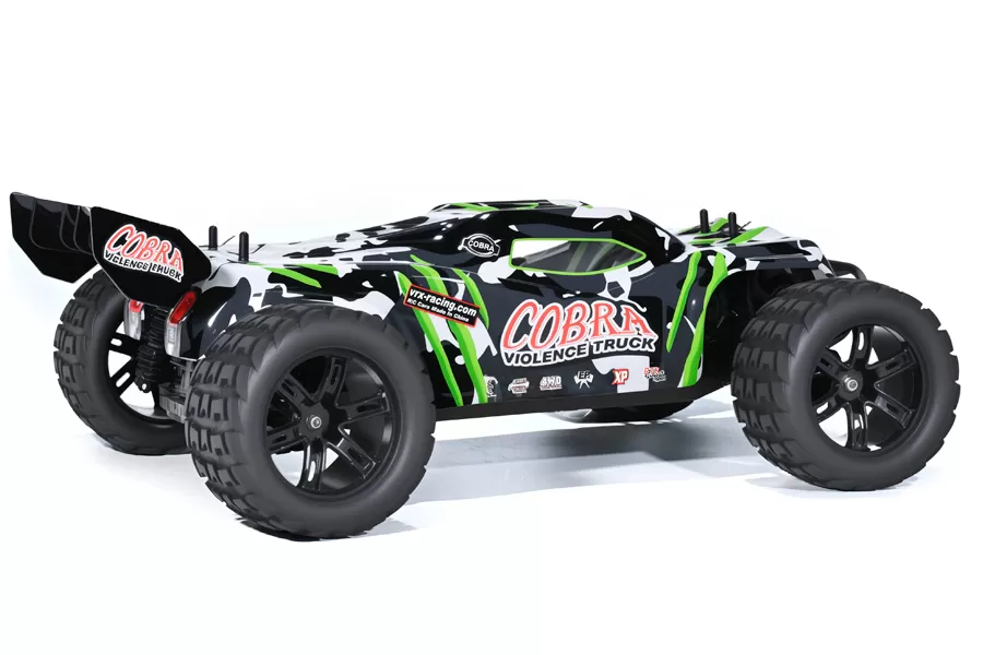 El VRX Racing Cobra Es un automóvil RC de alto rendimiento y listo para correr (RTR) diseñado para entusiastas del todoterreno que anhelan velocidad, durabilidad y estilo agresivo. Ya sea que esté atacando en terrenos accidentados o corriendo en pistas, este monstruo de escala 1/8 ofrece una experiencia de bombeo de adrenalina.