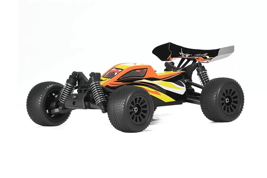 El Dart cuenta con un Mini Servo de 1,8 kg de par alto e independiente. El transmisor es un controlador remoto Flysky MG4 2,4G con rango de control de 150m, tiempo de respuesta rápido, operación de latencia cero. Esto hace que un vehículo RC de nivel de entrada excepcionalmente amigable para los principiantes.