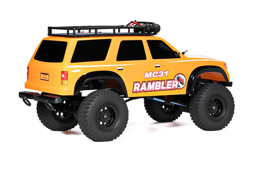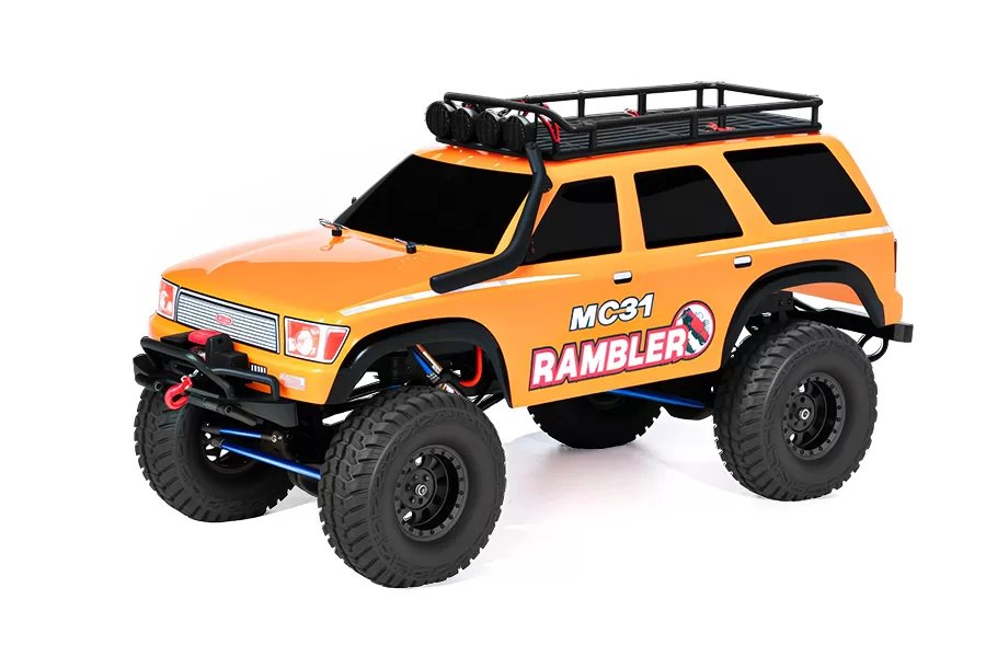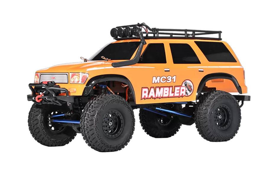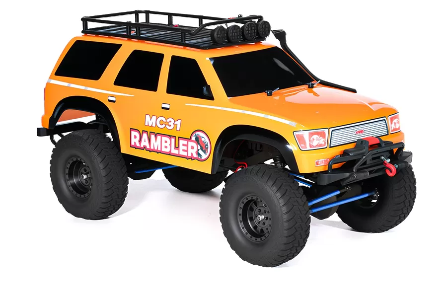 Neumáticos superblandos todo terreno con espuma de memoria, carcasa de estilo de pista inspirada en la escala, guardabarros moldeados, barra de techo y barra de luz, luces principales y cabrestante incluidos.