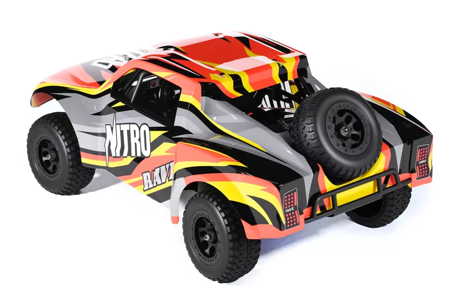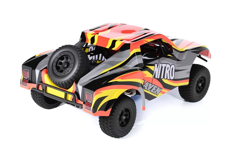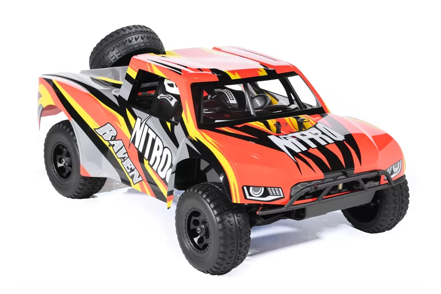 Fábrica ensamblada con servos impermeables y un sistema de radio de 2,4 GHz, el eje del nitro 4wd drivetrain, junto con los diferenciales delanteros y traseros con engranajes de metal está listo para manejar la emoción que solo un motor Nitro puede ofrecer.